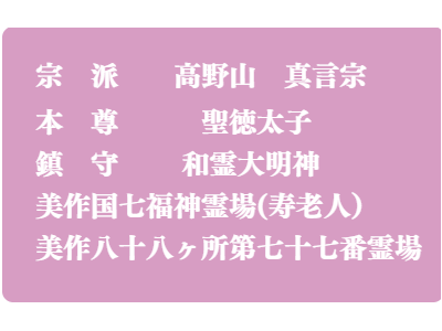 当寺の鎮守、和霊大明神は厄除けの神として、また願い事は必ずかなえてくれると言う津山地方で名 高い神様で、祭神は山家清兵衛公頼公(やんべせいべいきよもりこう)といい、四国は伊予の宇和島藩の家老で、仙台藩主・伊達政宗の子、秀宗に仕えた人。公は藩主を助け藩政上に手腕をふるい、 大いに治績と名声あげましたが、その反面これを怨みに思う者が出てきて、謀略にあい殺された。時に元和6年夏清兵衛25歳でありました。 この時、公は死ぬ間際に、