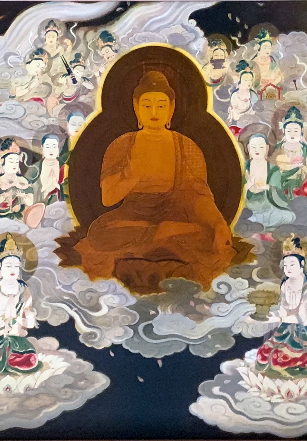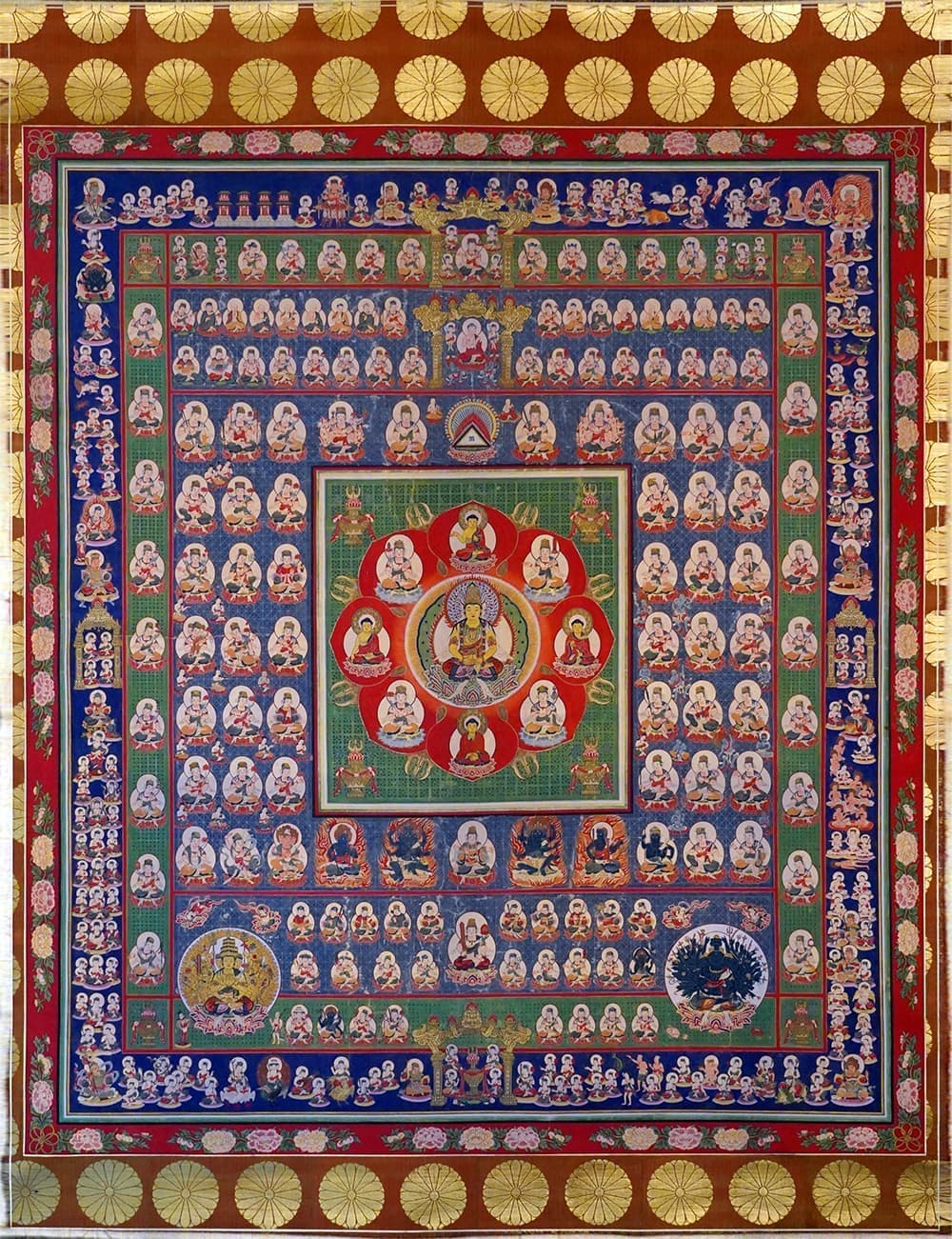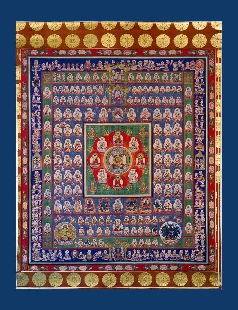 真言宗は大日如来を教主として仰ぎます。大日如来とは、宇宙の真理を意味する仏、つまり法身仏です。しかし、私たちが直接対象とする世界は、つまり曼荼羅の世界です。大日如来はこの曼荼羅の世界で、それぞれの世の中に応じて、教化しやすい仏の姿をとっているのです。ある時は、お不動様に、ある時は、観音様に、いわば、大日如来はすべての仏・菩薩・如来の本体なのです。それぞれの人が因縁によって結ばれた本尊を通じて、総本尊の大日如来に結ばれているのです。
